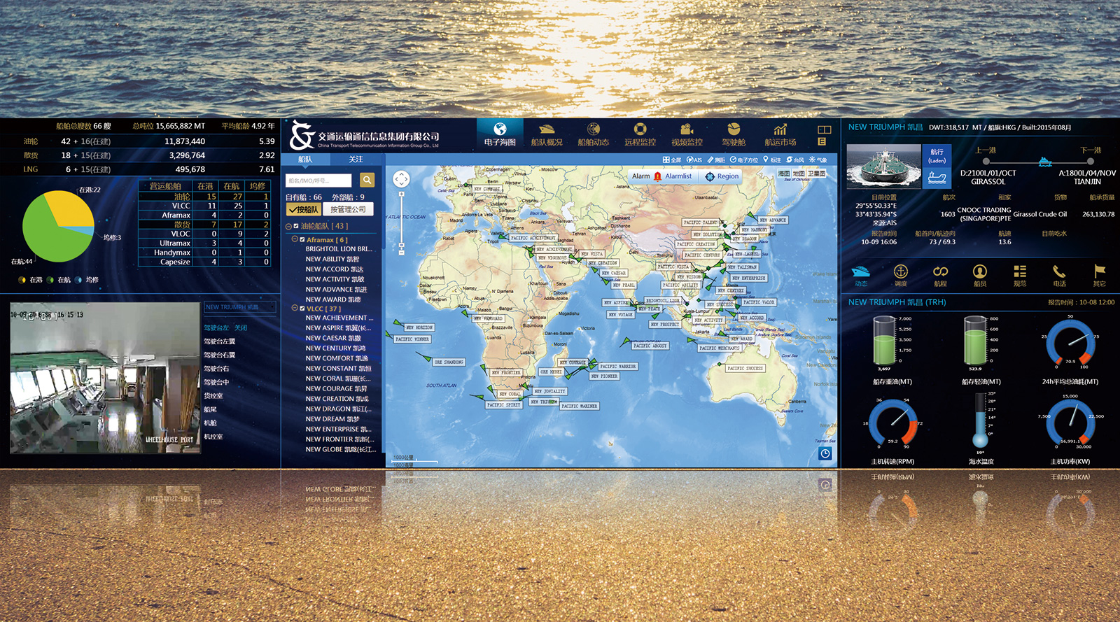船隊(duì)運(yùn)營管理可視化平臺(tái),該平臺(tái)的是以海圖為基礎(chǔ)平臺(tái),可以單船、同型號(hào)姊妹船舶、同噸位不同型號(hào)船、船隊(duì)等為經(jīng)營 管理的核算單位,將船舶位置跟蹤、位置監(jiān)控、視頻監(jiān)控、船舶安全、氣象服務(wù)等航海信息服務(wù)與經(jīng)營生產(chǎn)數(shù)據(jù)信息集成整合, 提供船舶工況監(jiān)控和生產(chǎn)數(shù)據(jù)分析,是服務(wù)于船舶安全管理和生產(chǎn)運(yùn)營的一體化可視平臺(tái)。